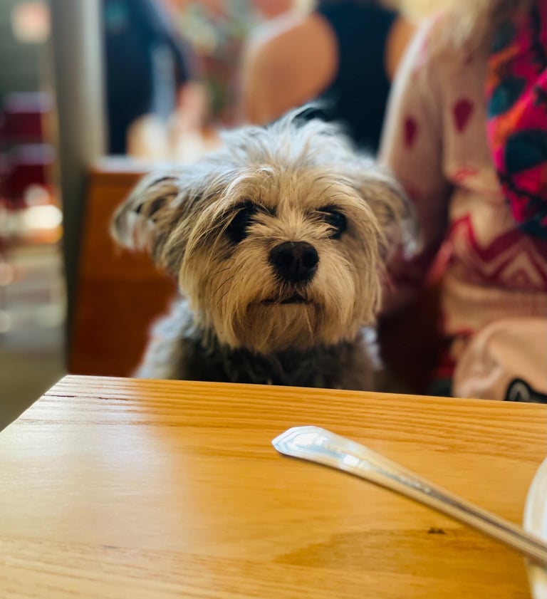 The patio is a pup dream — breezy, leafy, and filled with friendly faces (and noses). Whether you’re basking in the sun or working hard on “reporting” the latest brunch gossip, this is the perfect spot for both humans and hounds.